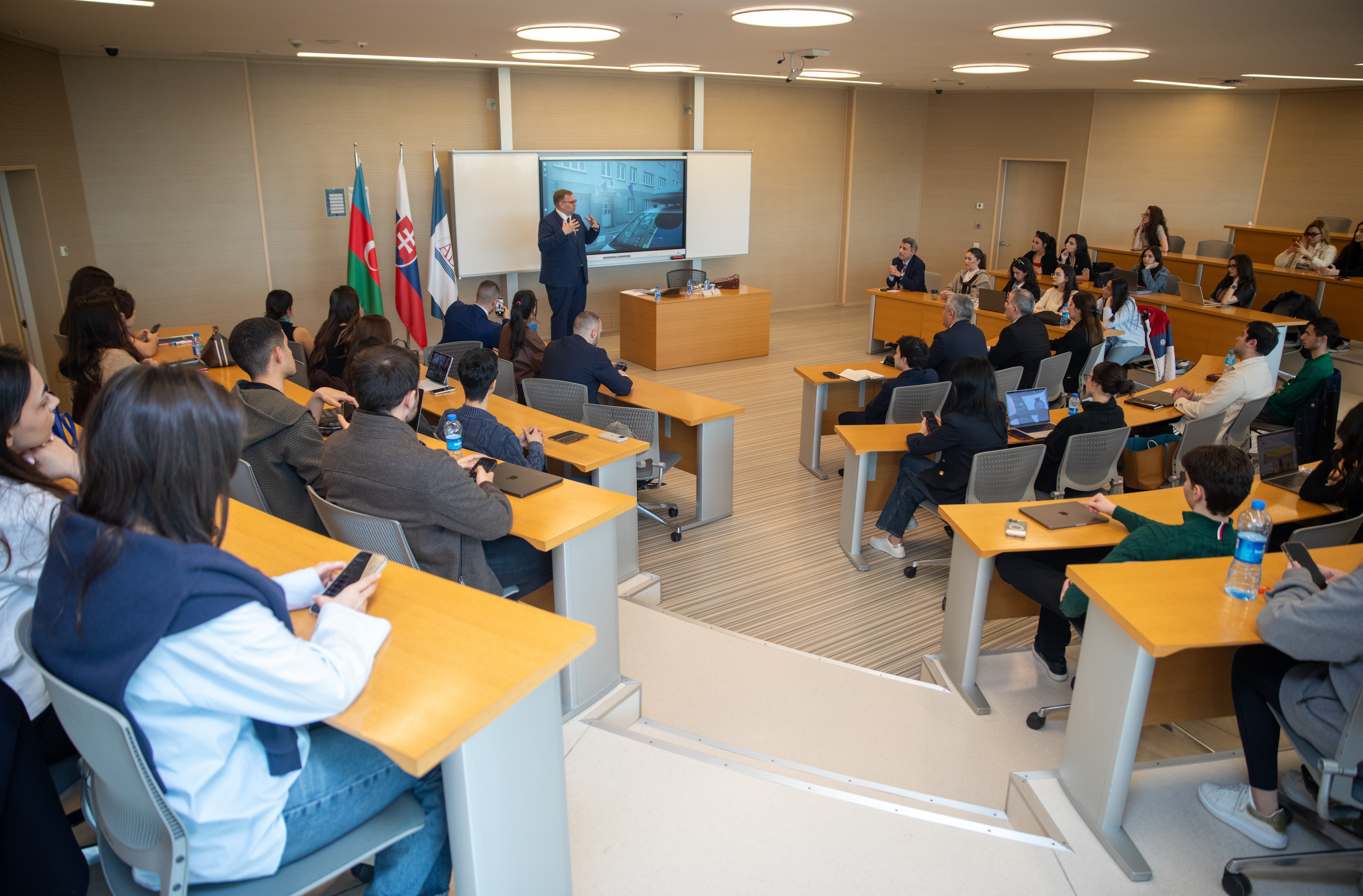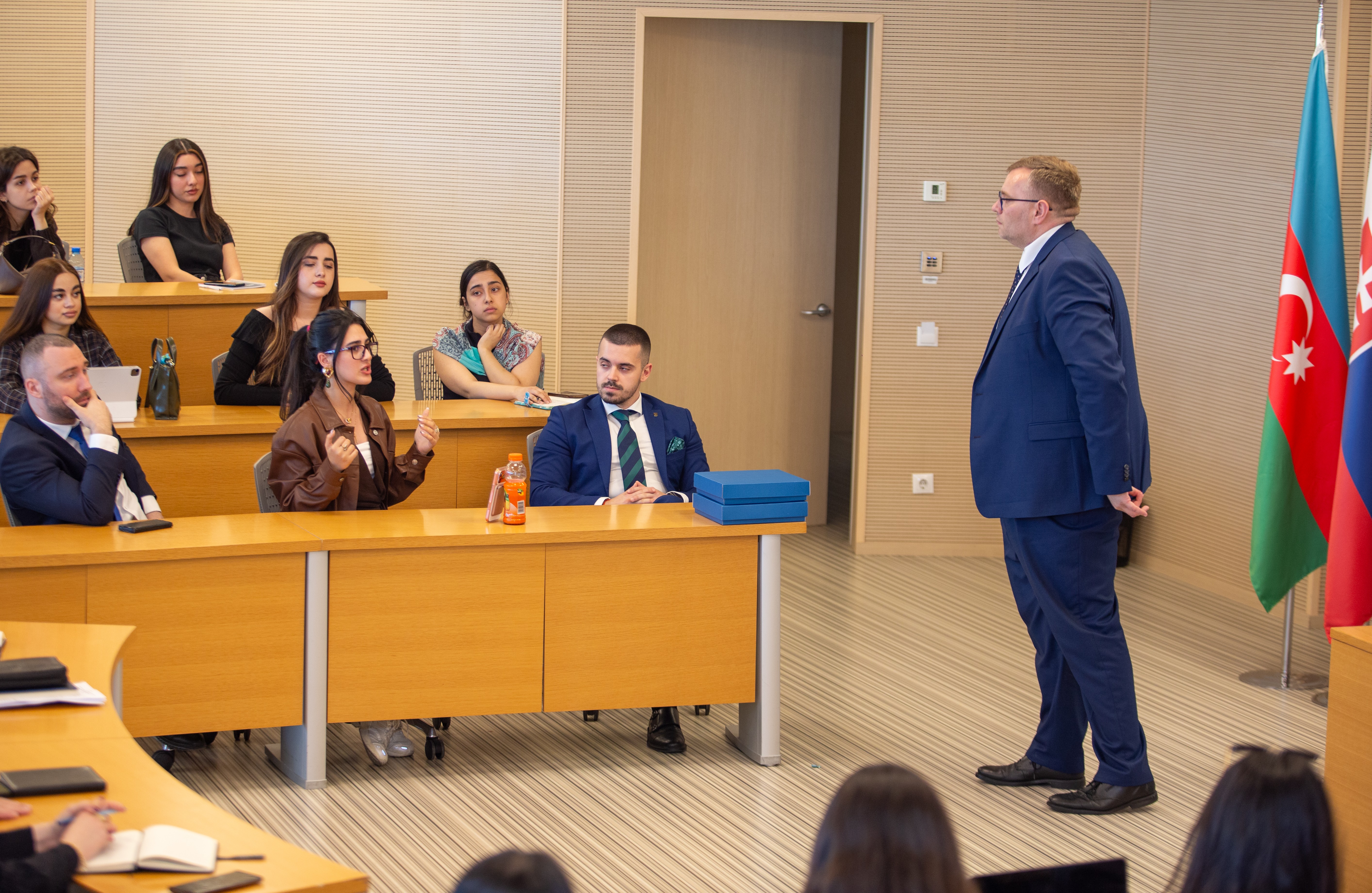 Slovakiya Ombudsmanı, həmçinin mövzu üzrə tələbələri maraqlandıran sualları ətraflı cavablandırıb, mövzu ətrafında interaktiv müzakirələr aparılıb.